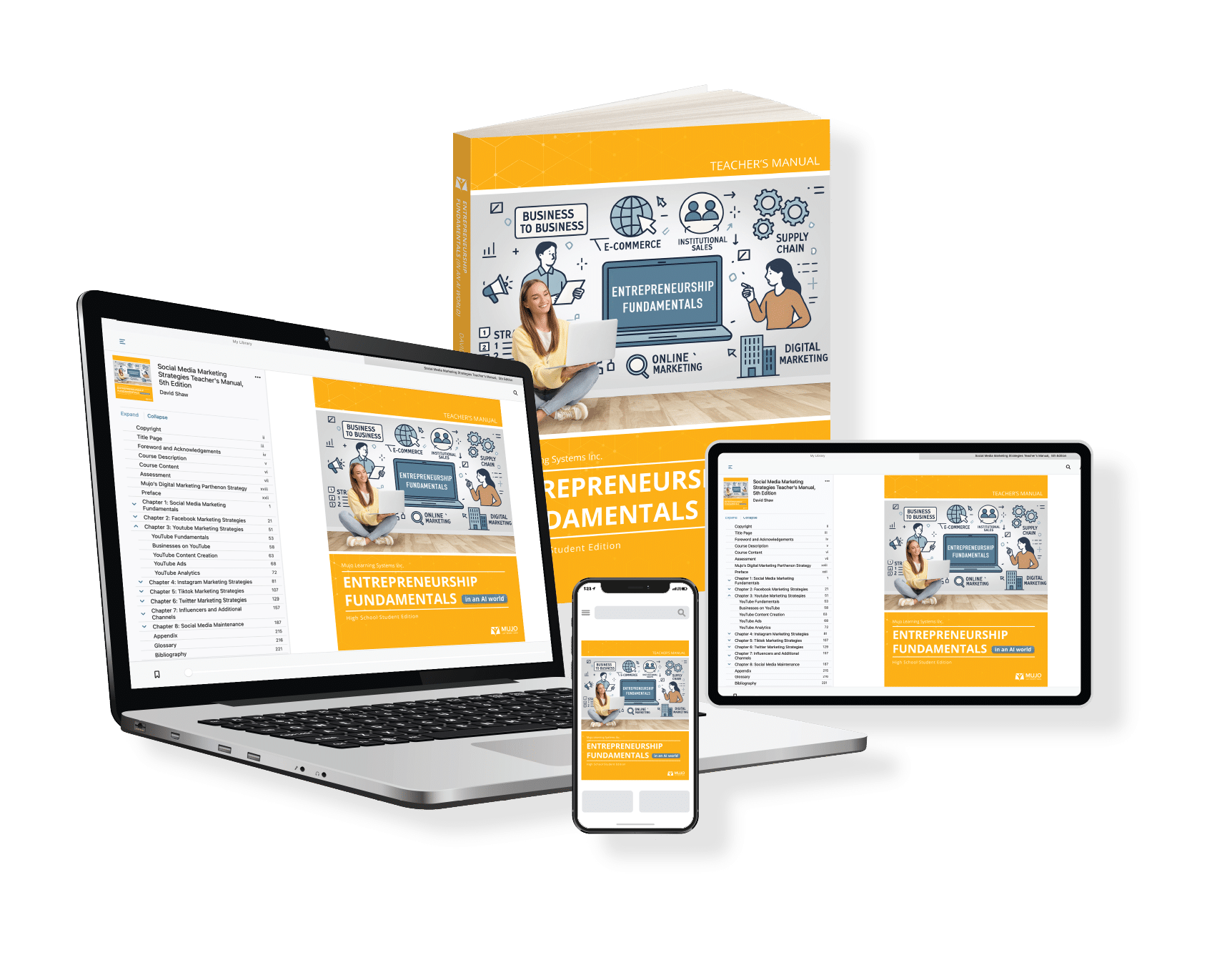 Buy 15 or more student e-books and get a free teacher manual, resource cloud, courseware, and phone/email support. This package includes everything you need, from tests, learning outcomes, and PowerPoint presentations, to student engagement videos, minute-by-minute lesson plans, and hours of supplemental materials. With our teacher resources cloud, educators can effortlessly follow our lesson plans, dedicating just a few minutes the day before class to ensure a successful course delivery.
